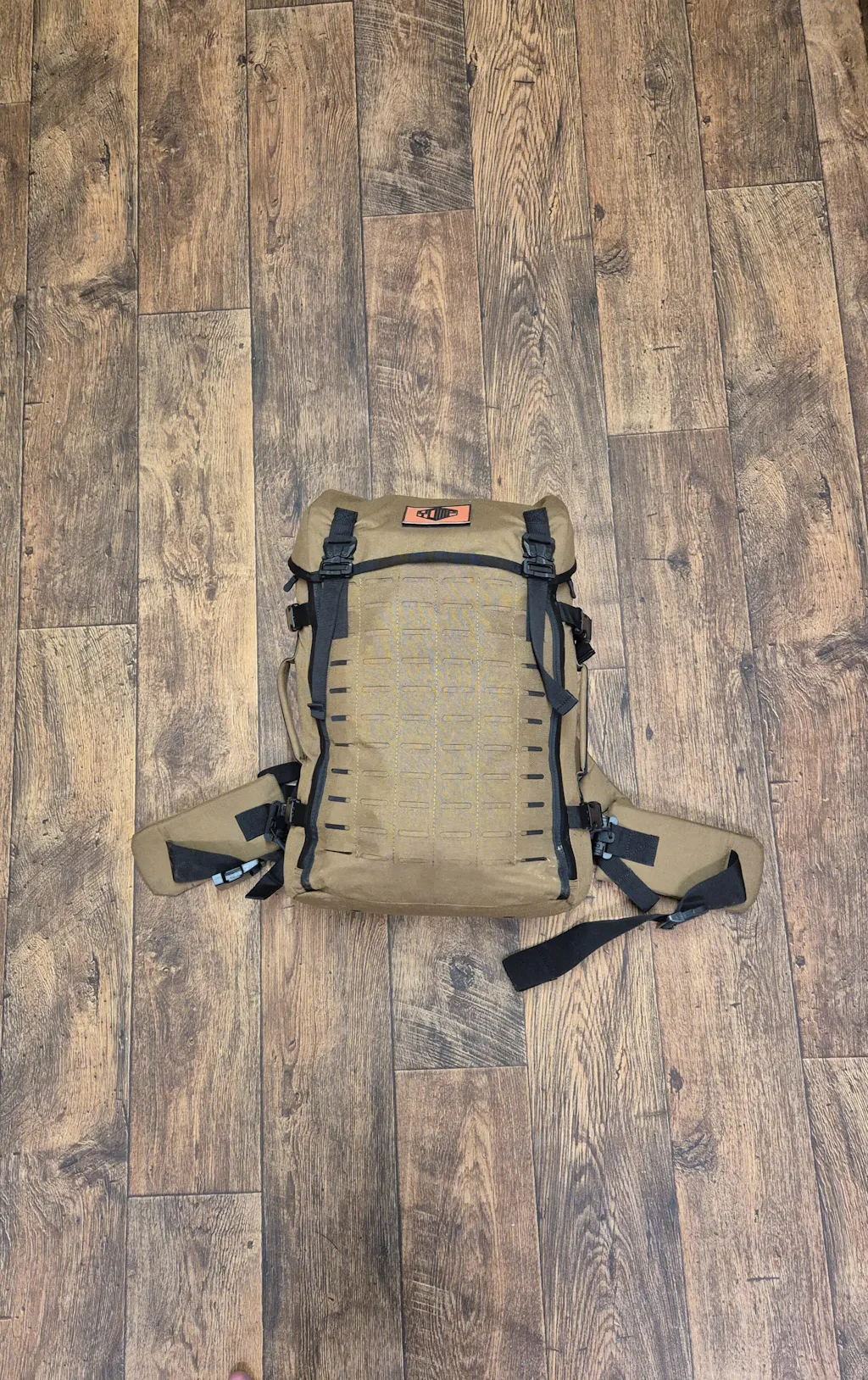 Verstärkt, wo es darauf ankommt, ist jeder Belastungspunkt mit Riegelnähten gesichert, während alle Tragegriffe und Schultergurte eine Kastennahtverstärkung für maximale Belastbarkeit aufweisen. Doppelte Kompressionsriemen halten Ihre Ladung fest, und eine lasergeschnittene MOLLE-Frontplatte bietet modulare Erweiterungsmöglichkeiten.